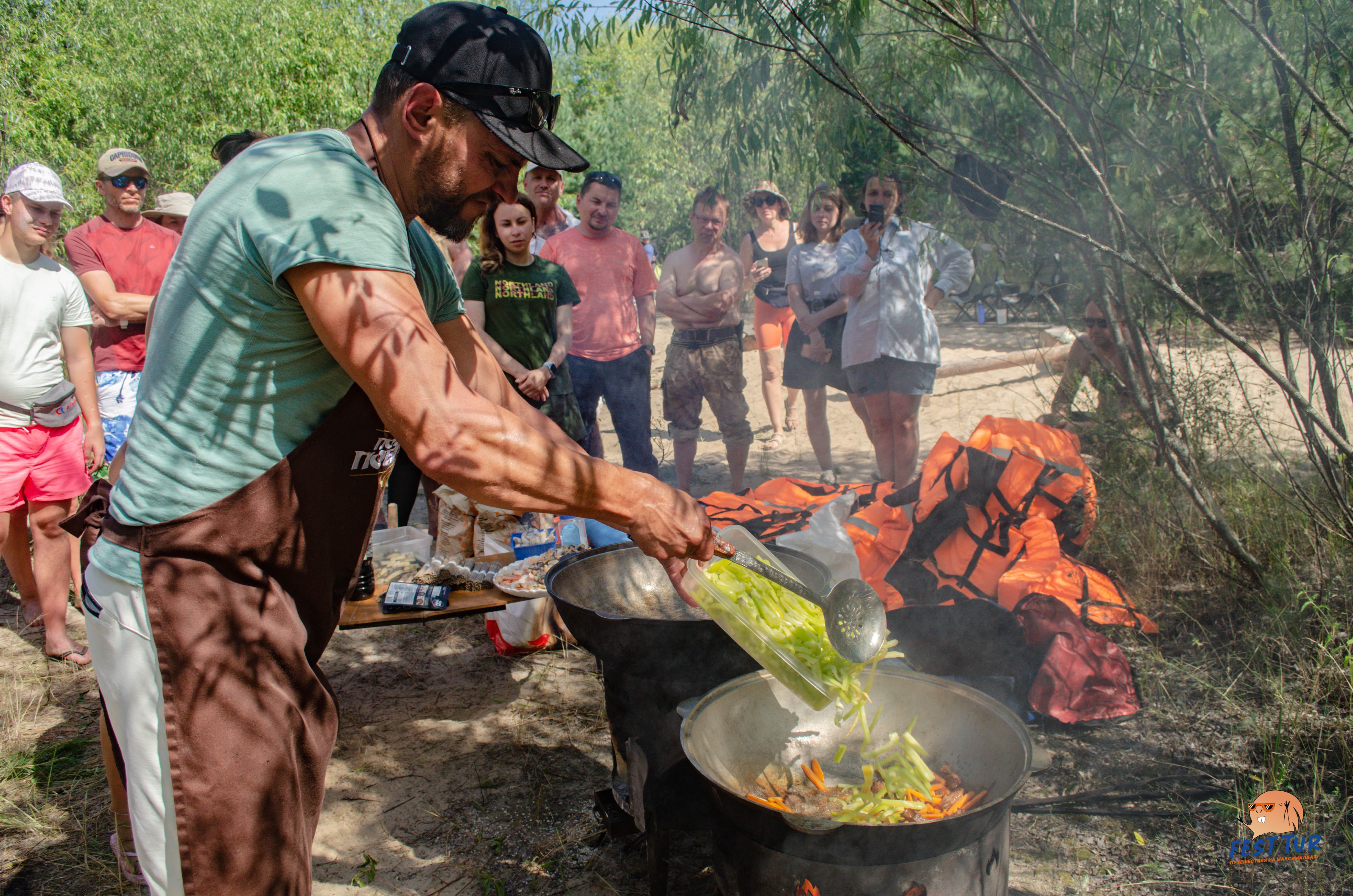 В программе: 2 дня сплава, 6 наивкуснейших блюд (в том числе и деликатесных), приготовленных на живом огне, великолепная сервировка и оформление, жаркая походная баня, уютные вечера в дружной компании, полный набор походной романтики.
