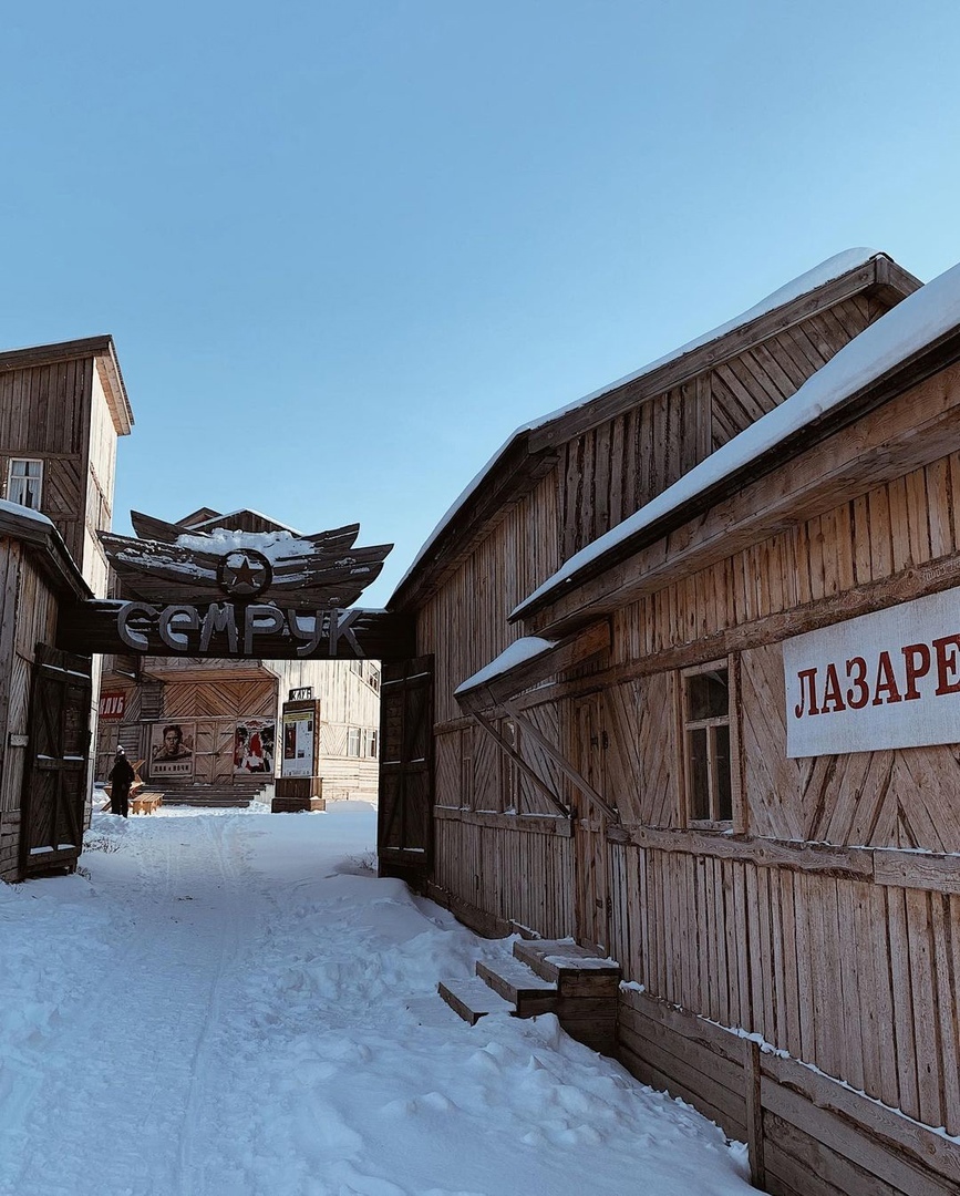 На берегу Камы есть одно атомосферное место. Это Спецпоселок Семрук. Его построили в 2018 г. для съемок сериала по роману Гузели Яхиной «Зулейха открывает глаза».По окончании процесса декорации решили не разбирать, и Семрук стал местной достопримечательностью. Здесь снимали эпизоды о непростой жизни Зулейхи и других раскулаченных крестьян в сибирской тайге.