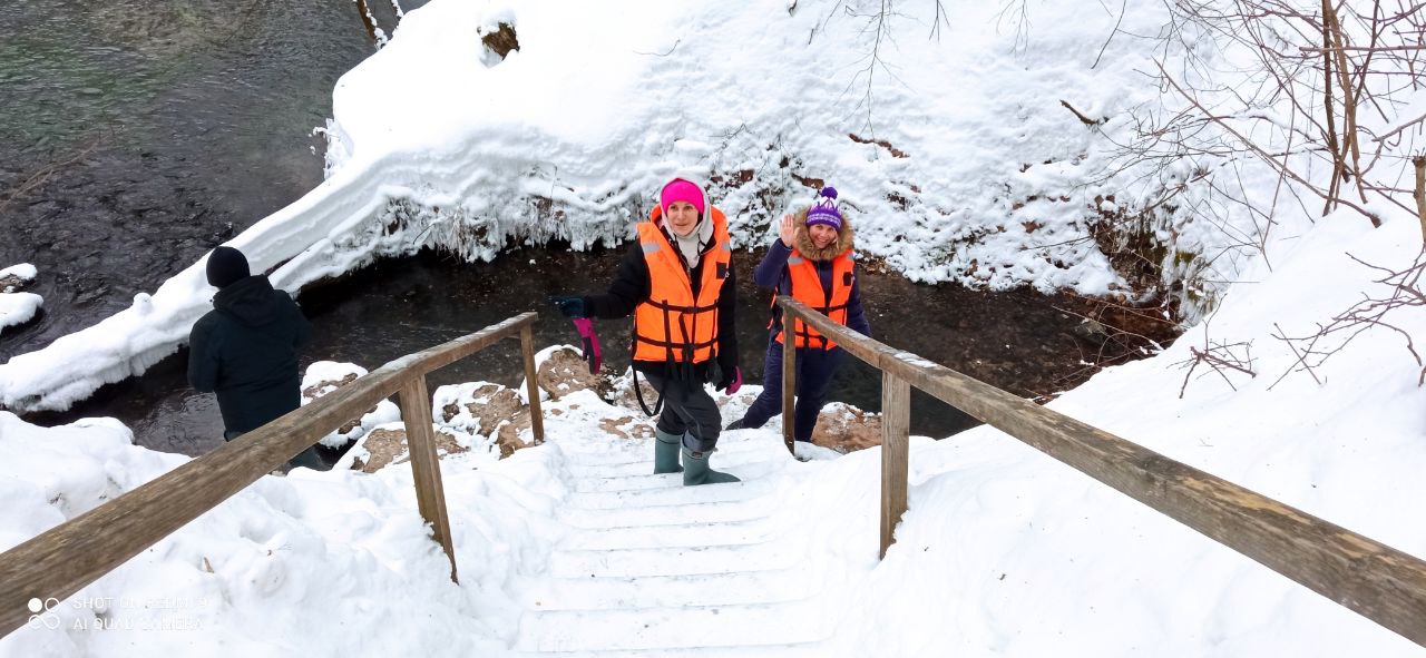 С нами абсолютно безопасно, позитивно и не страшно! На реке совсем не холодно, а вот ОДЕВАТЬСЯ все же надо по зимнему! Чистое время сплава займёт около 5 часов.